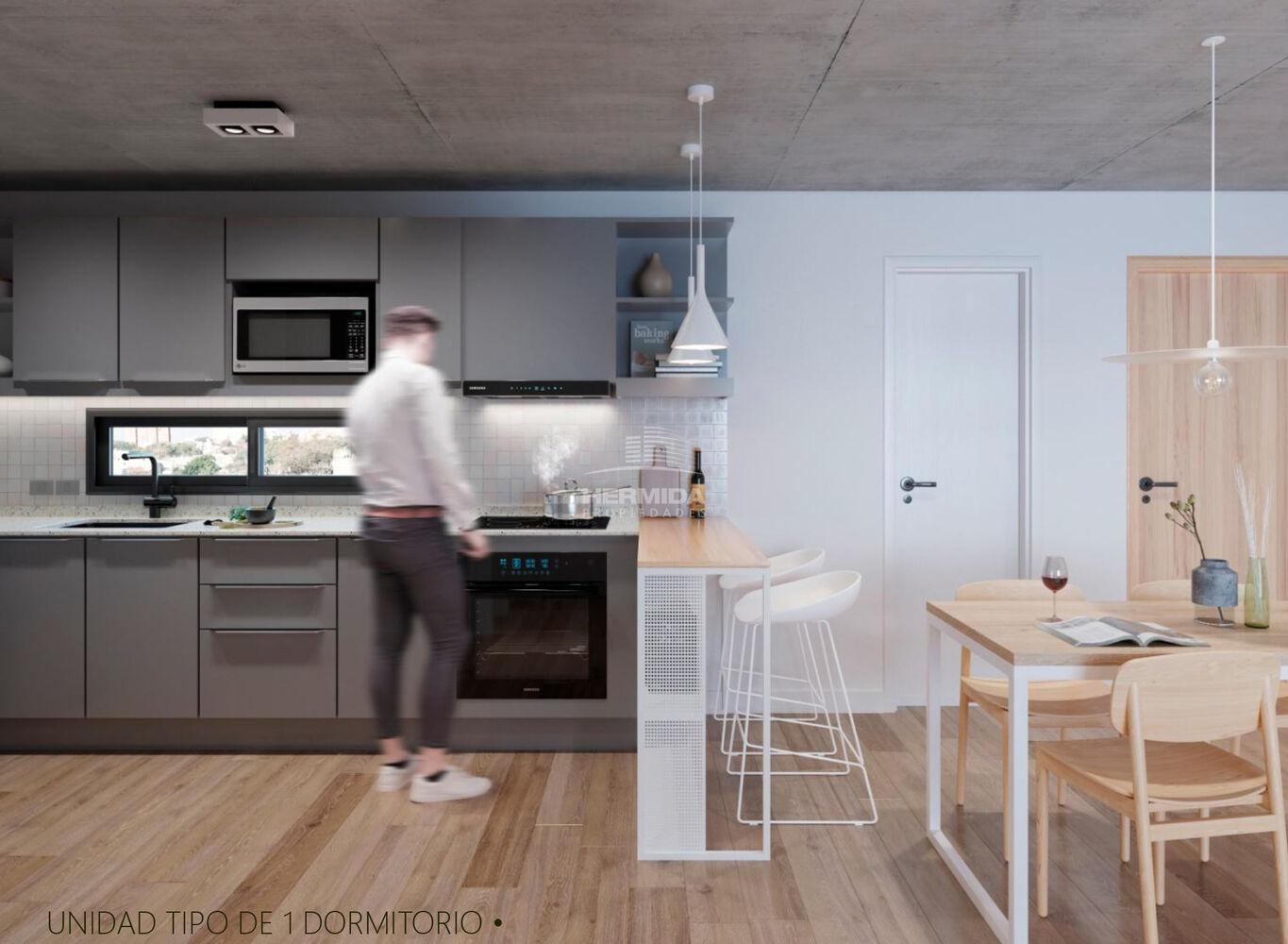 Los apartamentos contarán con terraza principal y terraza lavadero , las cocinas son definidas con barra separativa hacia el living comedor.