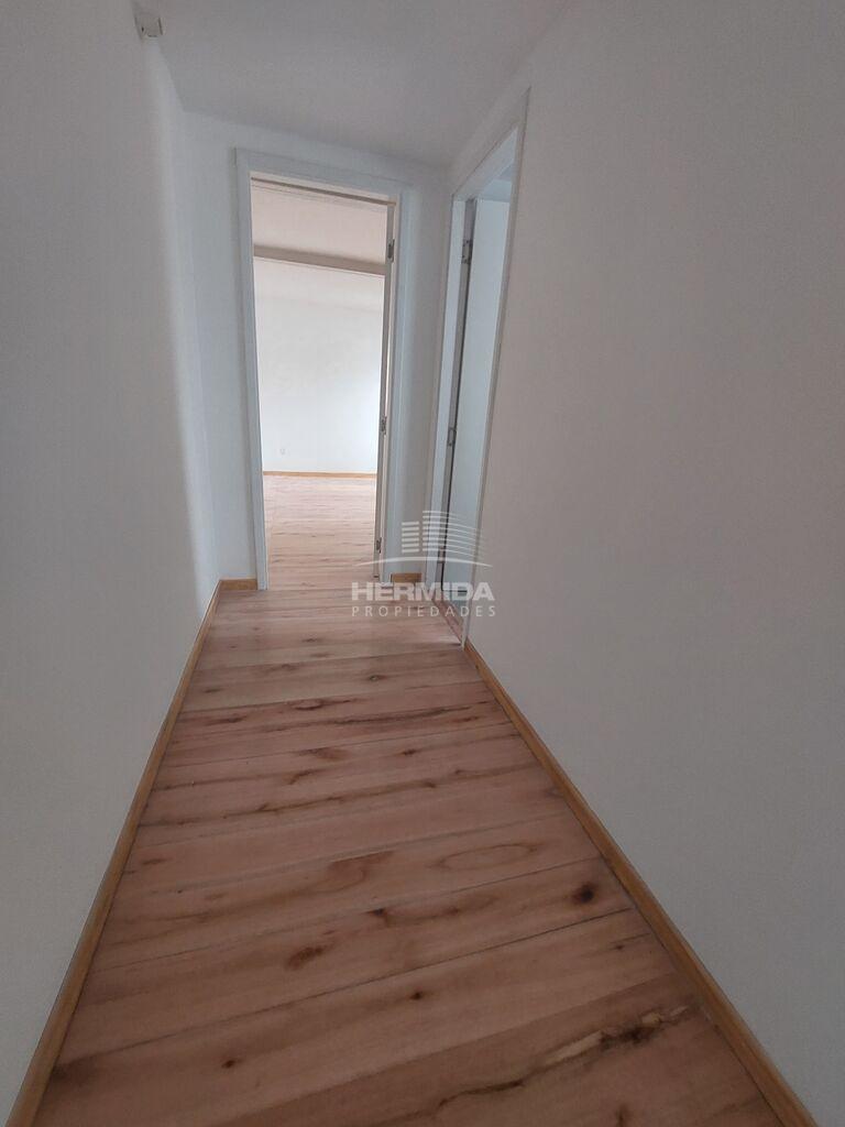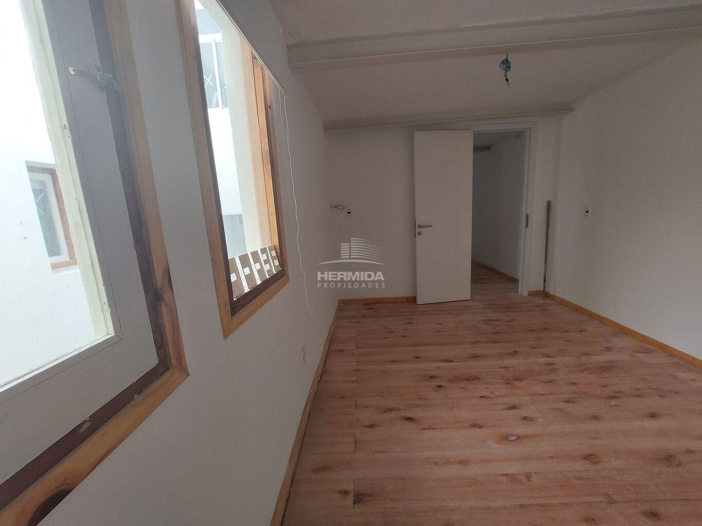 Pisos de madera natural, pulidos y plastificados, aberturas batientes de madera restaurada.