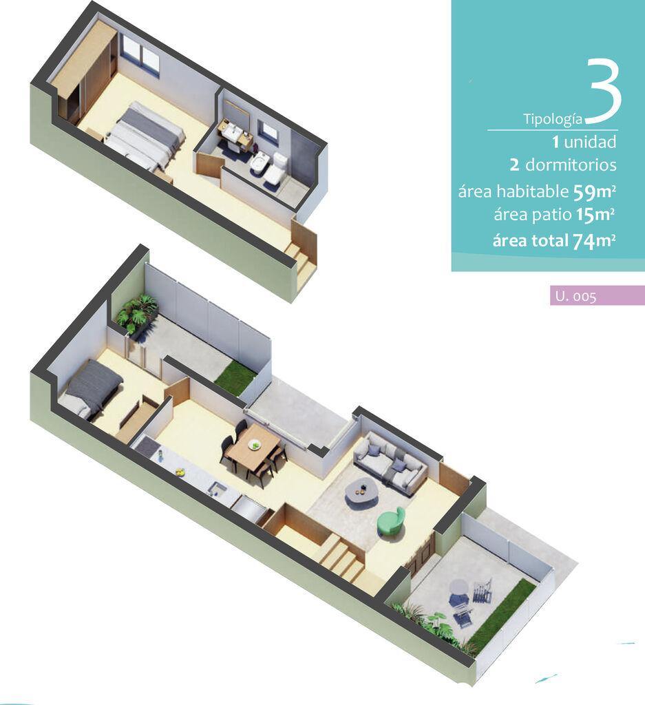 Unidad 005 ofrecida en USD 145.000 + gastos de ocupación 4 % ( incluye reglamento de copropiedad, plano de agimensura, conexiones UTE Y OSE, alhajamiento de espacios comunes ).