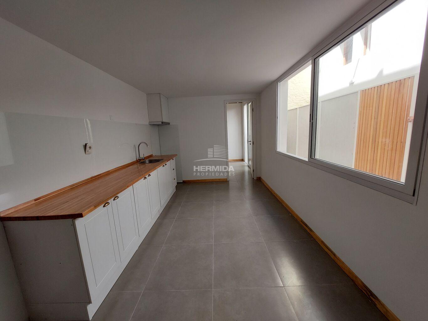 Cocina integrada con buena mesada. Primer dormitorio , con salida a segundo patio , con ventanales.