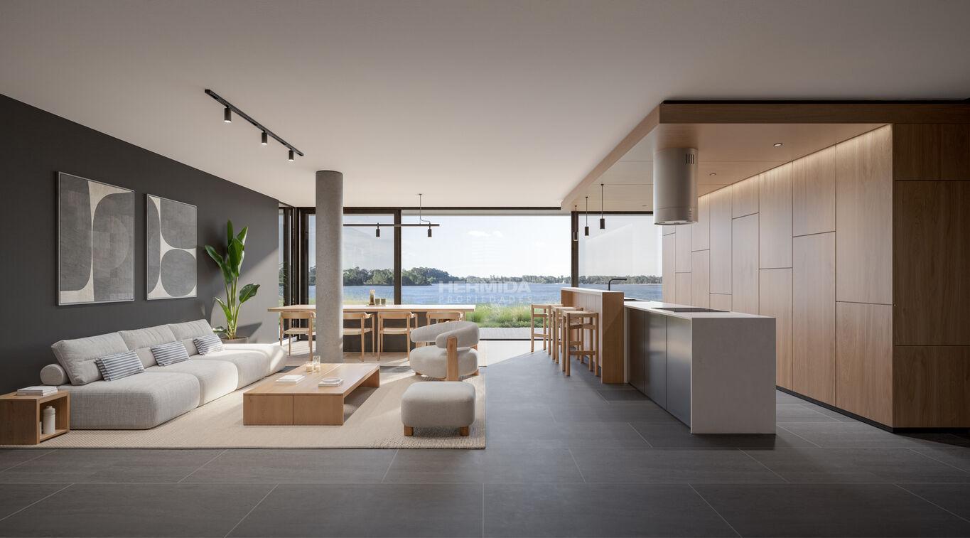 Interiores cuidadosamente diseñados con exteriores integrados al paisaje y al lago. Alto segmento en terminaciones y sistemas constructivos.