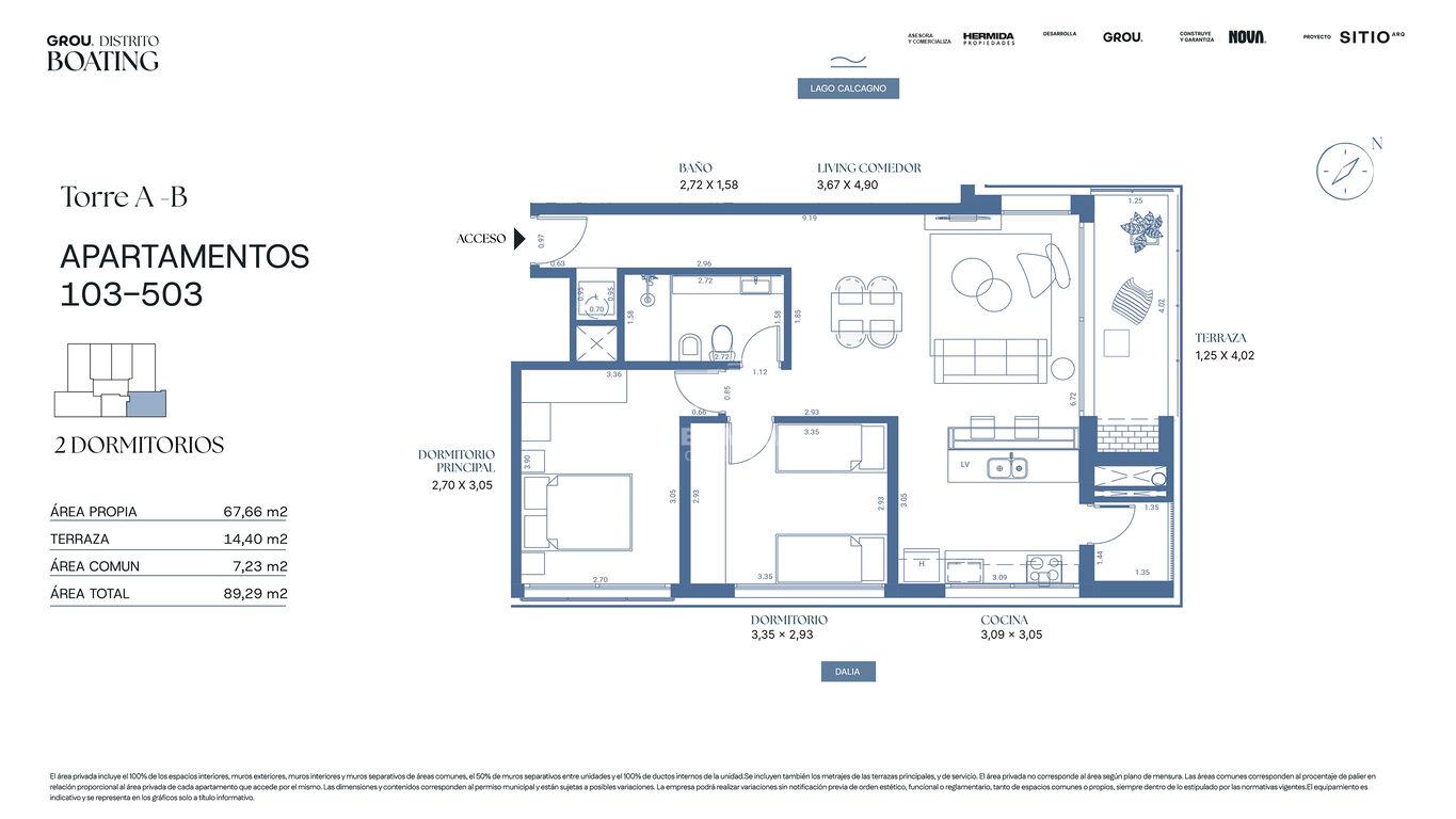 Unidades de 1 , 2 y 3 dormitorios. Todos los apartamentos con terrazas, y las unidades frente al Lago con parrilleros exclusivos.