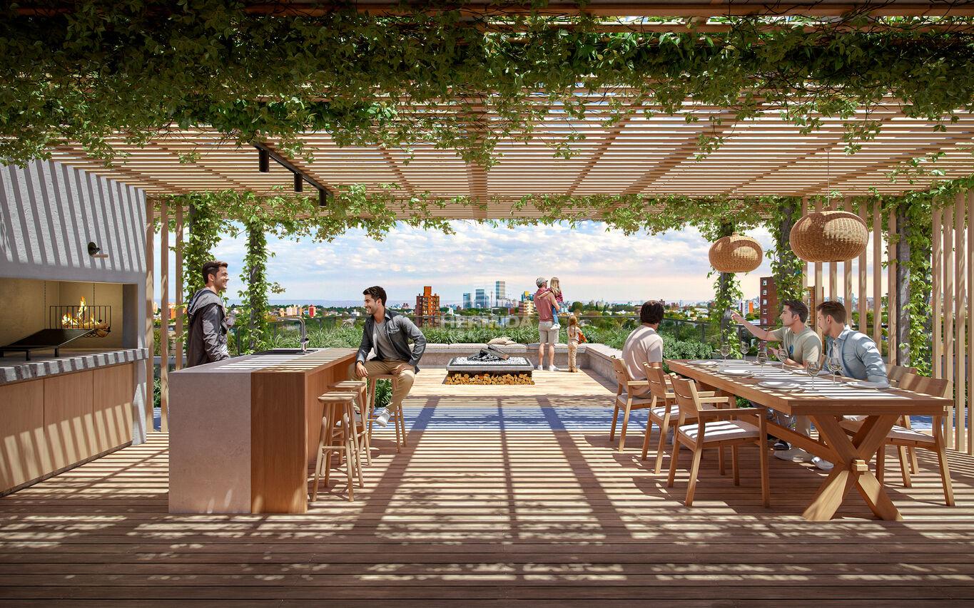 Servicios como: SUM con parrillero cerrado y totalmente equipado. 2 parrilleros abiertos en fabulosas terrazas, Sector de fuegos, área fitness, circuito aeróbico (80 mts), Co-Work,, salas de entretenimiento, Patio Zen, Jardín, Lavadero. Estacionamiento para bicis.