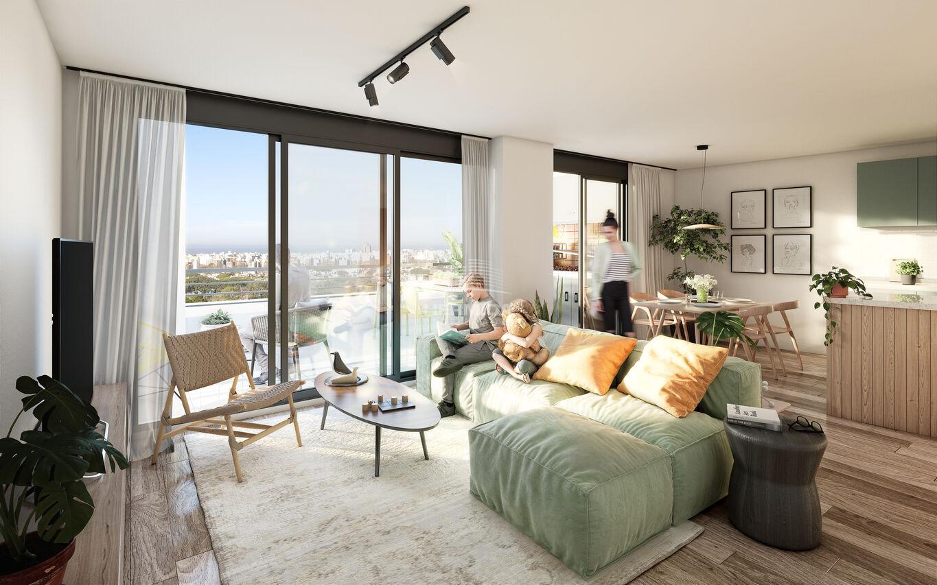 Amplio y funcional apartamento de 3 dormitorios, con terraza y parrillero exclusivo. Vista verde.