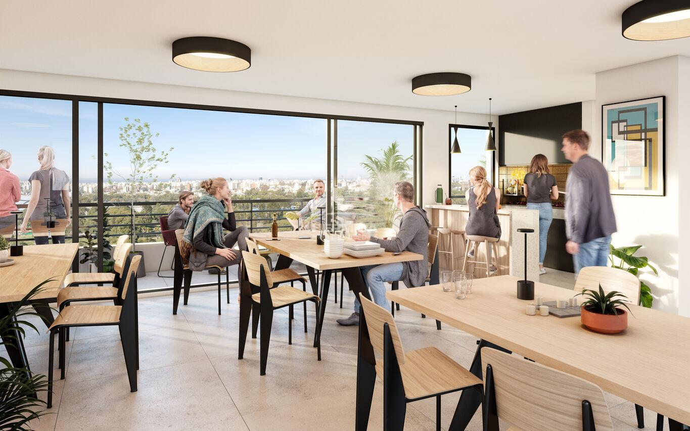Amenities que proyectan tu disfrute y comodidad al máximo : Barbacoa equipada y parrillero abierto, salón de usos múltiples con vistas panorámicas al Parque Batlle, gimnasio, patio interior enjardinado, bicicletero, laundry, portería virtual.