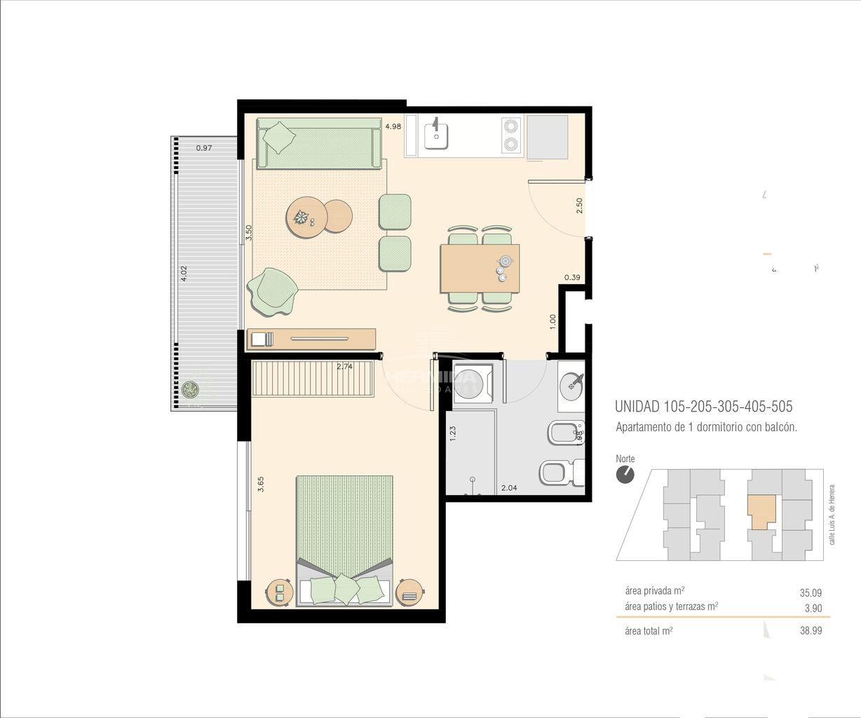 Superficie Construida: 39 m²