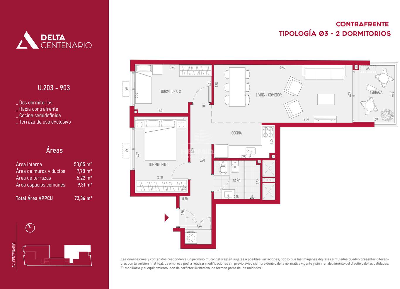 - Superficie Total: 72